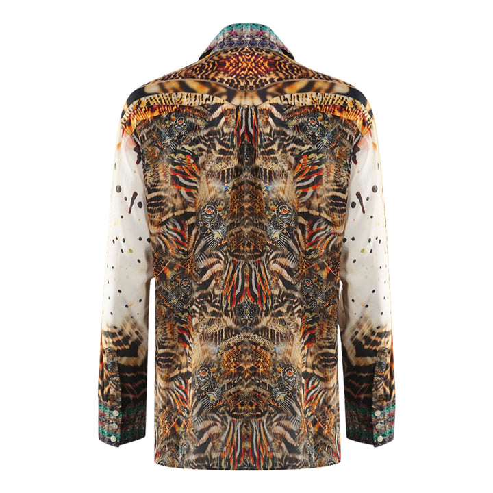 Inoa Golden Eagle 120214 Multicoloured Long Sleeve Blouse Silk Shirt. Show off your style wearing the Inoa Multicoloured Blouse. Its flattering Print make it a timeless piece for your wardrobe. Crafted from luxurious fabric, you'll make a statement with every wear. Make a statement in style!. 100% Silk, Animal Print Design. Long Sleeve, Button Closure, Collared Neck. This Item is suitable for sizes UK 8- UK 14. Product Style: Golden Eagle 120214